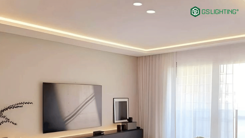 Trần bê tông mỏng hoặc chung cư thấp: ưu tiên đèn âm trần siêu mỏng để đảm bảo chiều cao không gian.