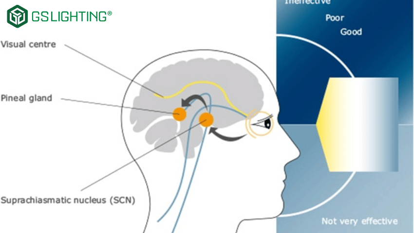 Ánh sáng là yếu tố chính điều khiển đồng hồ sinh học của con người. Khi ánh sáng đi vào mắt, nó kích hoạt các tế bào đặc biệt trong võng mạc – đặc biệt là tế bào hạch nhạy cảm với ánh sáng xanh – truyền tín hiệu đến não để điều chỉnh nhịp sinh học.