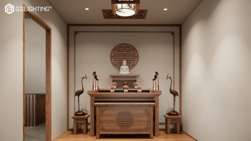 Chiếu sáng từ trên xuống và tỏa đều: Giúp không gian hài hòa, không tạo bóng tối ở vị trí bàn thờ.