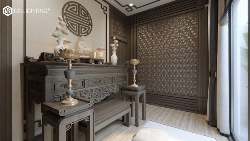 Gợi ý bố trí đèn phòng thờ theo từng không gian