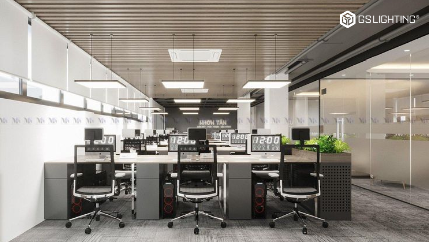 Gợi ý phối hợp: Kết hợp ánh sáng chiếu điểm với đèn panel hoặc đèn âm trần đồng đều để đảm bảo đủ sáng cho toàn văn phòng.
