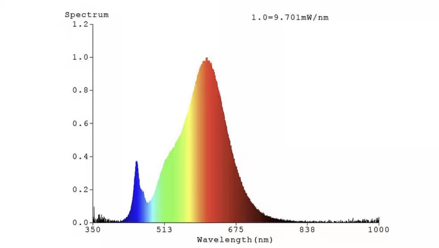 Dưới đây, bạn sẽ thấy một biểu đồ phân phối công suất quang phổ điển hình cho ánh sáng ban ngày.
