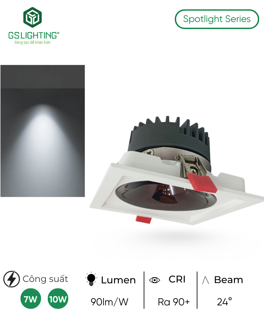 Đèn âm trần module đơn có hiệu suất quang lớn lên đến 90Lm/W, đảm bảo ánh sáng mạnh mẽ và hiệu quả.