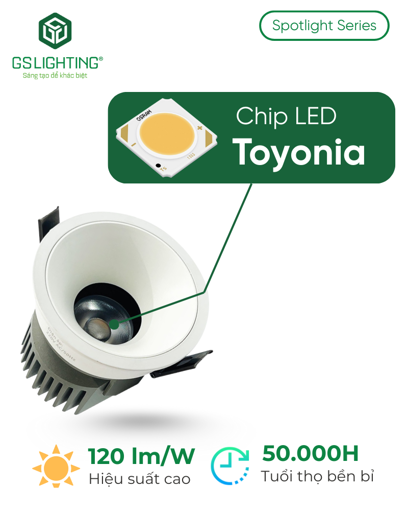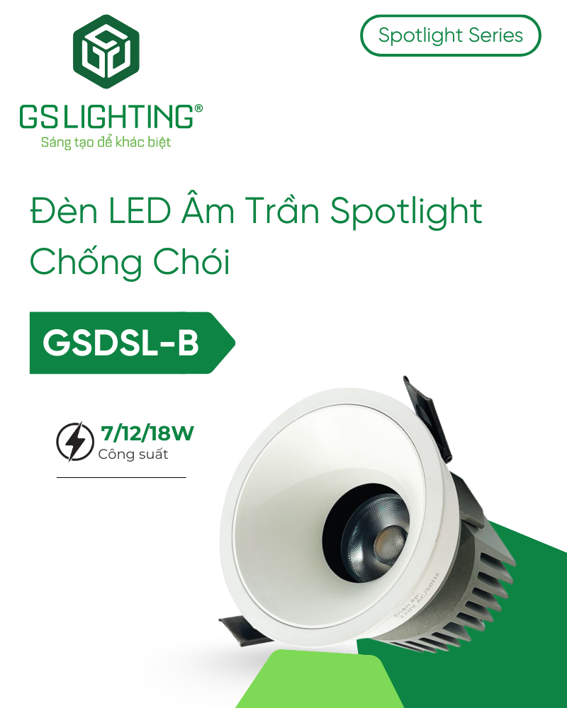 Đèn LED âm trần Spotlight GSDSL-B là lựa chọn tối ưu cho các công trình đòi hỏi chất lượng ánh sáng cao, thiết kế hiện đại và độ bền vượt trội. Sản phẩm được ứng dụng công nghệ LED tiên tiến, giúp nâng cao hiệu suất chiếu sáng, tiết kiệm điện năng và đảm bảo tuổi thọ dài lâu. Đây là giải pháp chiếu sáng lý tưởng cho nhà ở, văn phòng, khách sạn, showroom và các không gian nội thất cao cấp.
