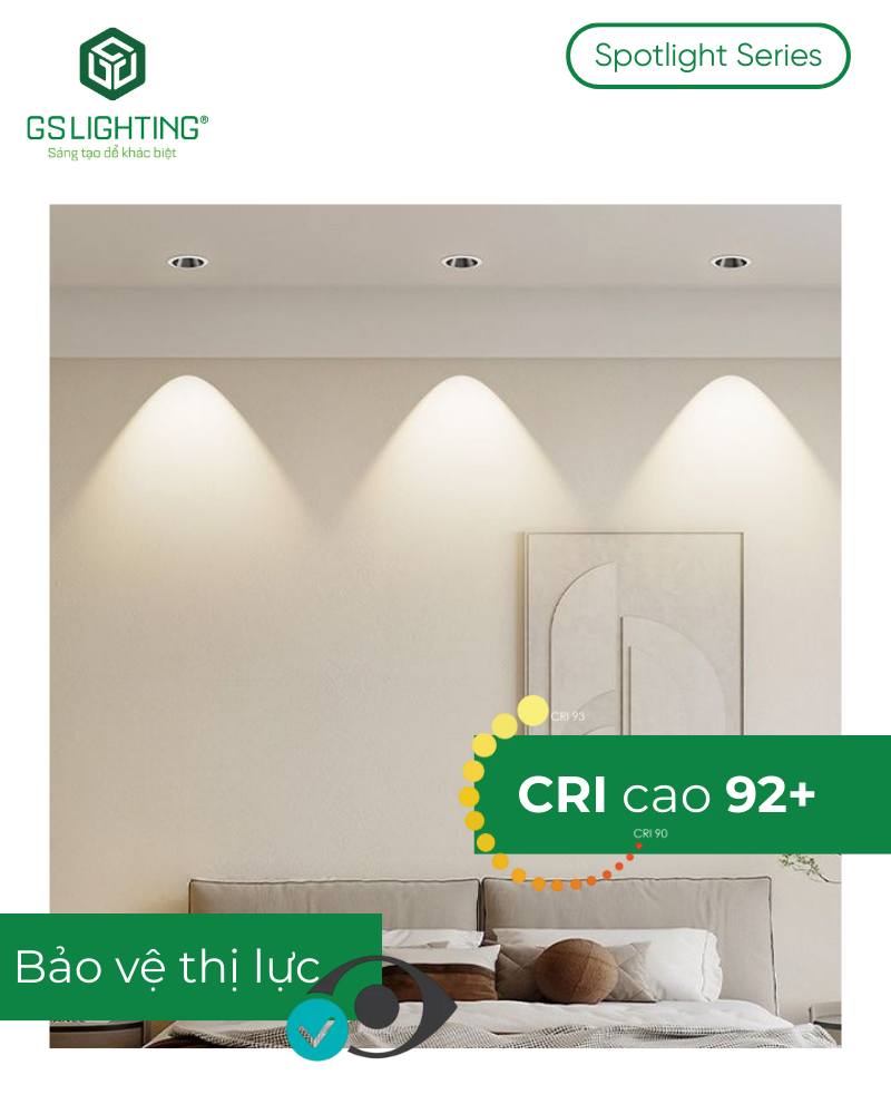Chỉ số hoàn màu CRI > 92, giúp tái tạo màu sắc chân thực, phù hợp với không gian yêu cầu độ chính xác màu cao.