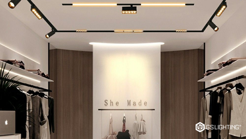 Ánh sáng đóng vai trò “đạo diễn thị giác” trong các showroom cao cấp. Sử dụng đèn rọi ray tiêu cự hình học giúp ánh sáng được dẫn dắt đúng nơi, đúng điểm, tôn vinh từng chi tiết sản phẩm: chất liệu vải, họa tiết, màu sắc, v.v… – từ đó thúc đẩy hành vi mua sắm.