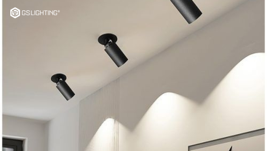 Spotlight gắn nổi: Lắp trực tiếp trên bề mặt trần hoặc tường, linh hoạt trong thi công.