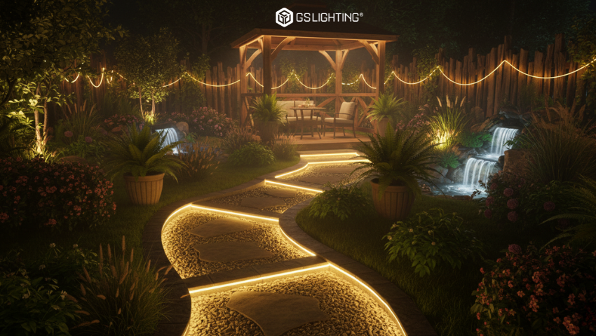 Ứng dụng dây đèn LED trang trí ngoài trời trong sân vườn gia đình