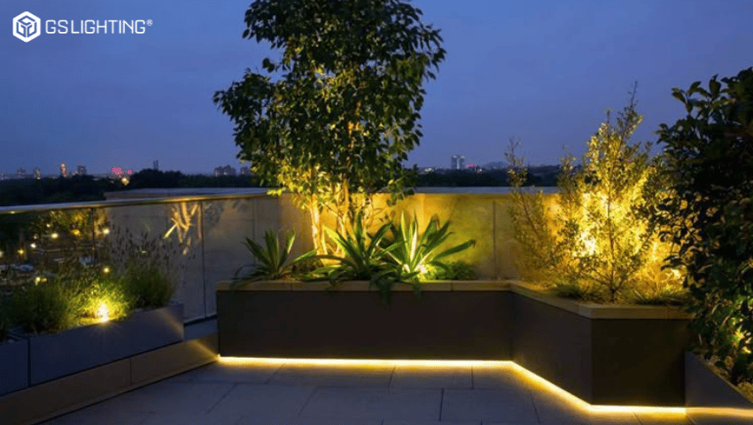 Chọn ánh sáng đúng “tone”: Với cây xanh và tiểu cảnh thiên nhiên, ánh sáng vàng ấm hoặc trắng dịu nhẹ sẽ làm nổi bật nét tự nhiên, trong khi ánh sáng màu có thể dùng để tạo điểm nhấn nghệ thuật.
