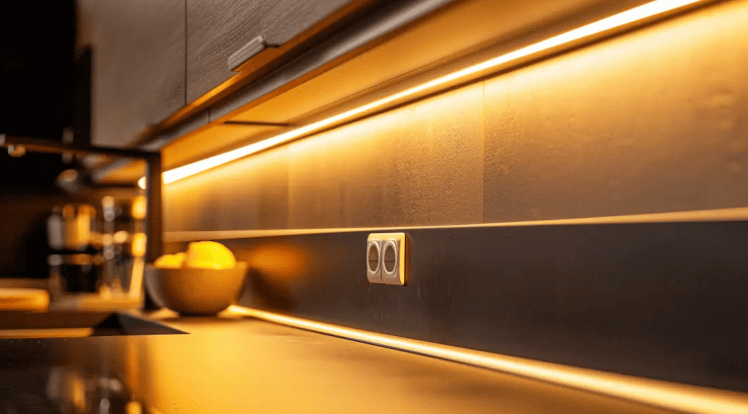 1. Lắp Đèn LED Dưới Tủ Bếp – Ánh Sáng Nhẹ Nhàng, Tinh Tế Mỗi Ngày